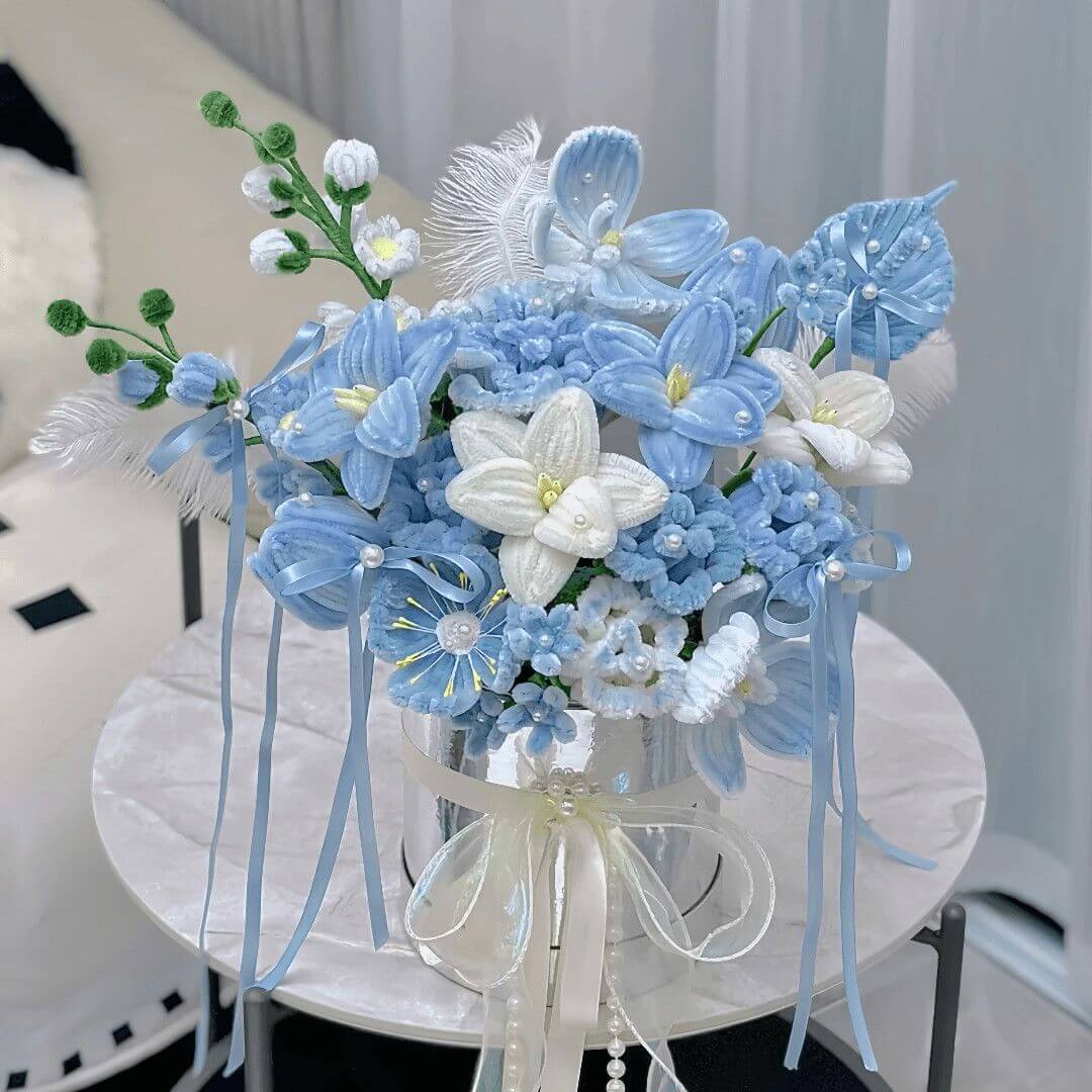 Create a stunning floral arrangement in an adorable container! This complete kit contains premium chenille stems and a reusable "hug bucket" to craft a bountiful, everlasting bouquet.